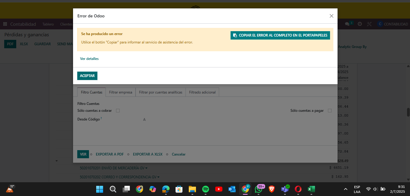 Este error es causado por la descargar masiva de información del sistema, por ejemplo reporte de libro mayor.
