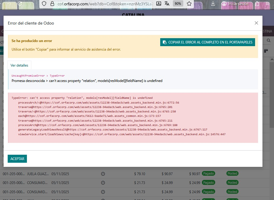 Este error se da porque en la vista estaba establecido el campo "x_studio_a_pagar", se borra de la vista y solo se deja "a_pagar"