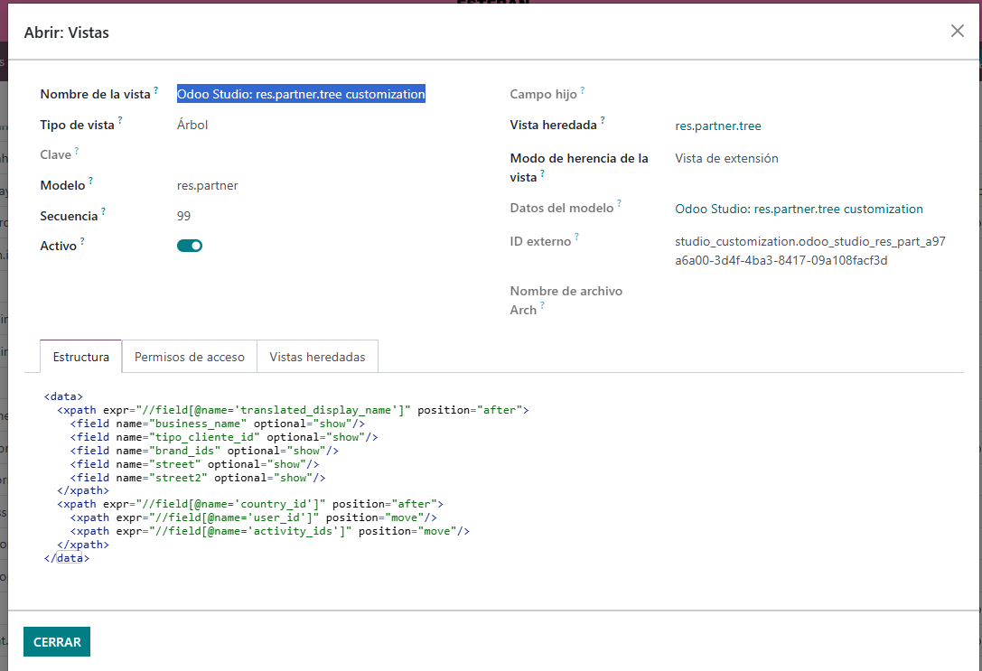 EXTRA: PARA ACTUALIZAR LOS CONTACTOS DEPENDE DE UNA VISTA CREADA CON ODOO STUDIO. CASO CONTRARIO, MOSTRARA EL SIGUIENTE ERROR: